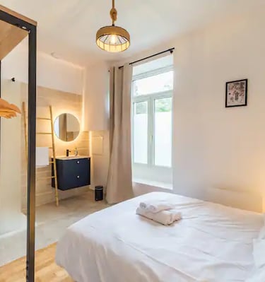 Son style art déco se reflète à travers les mascarons ornant la façade, de magnifiques voûtes, et une cheminée majestueuse dans la suite royale Bien-être.